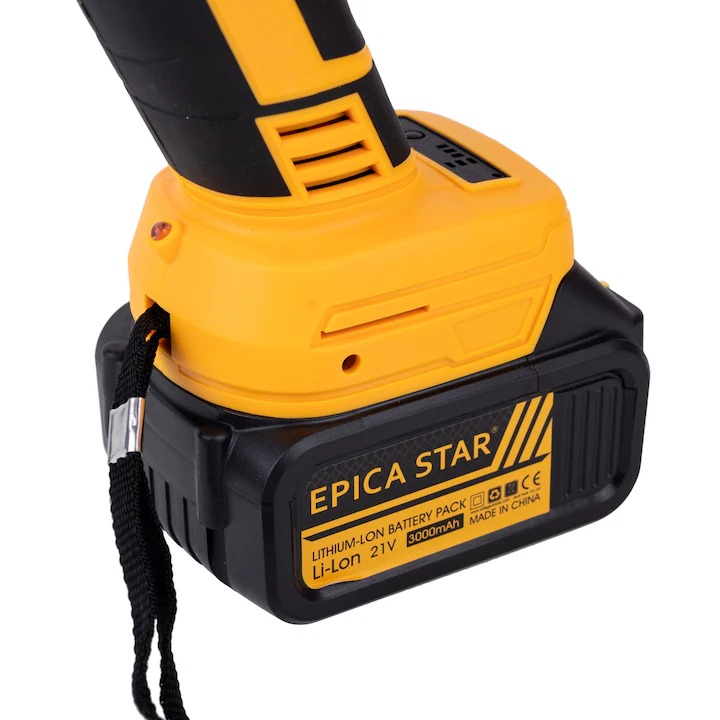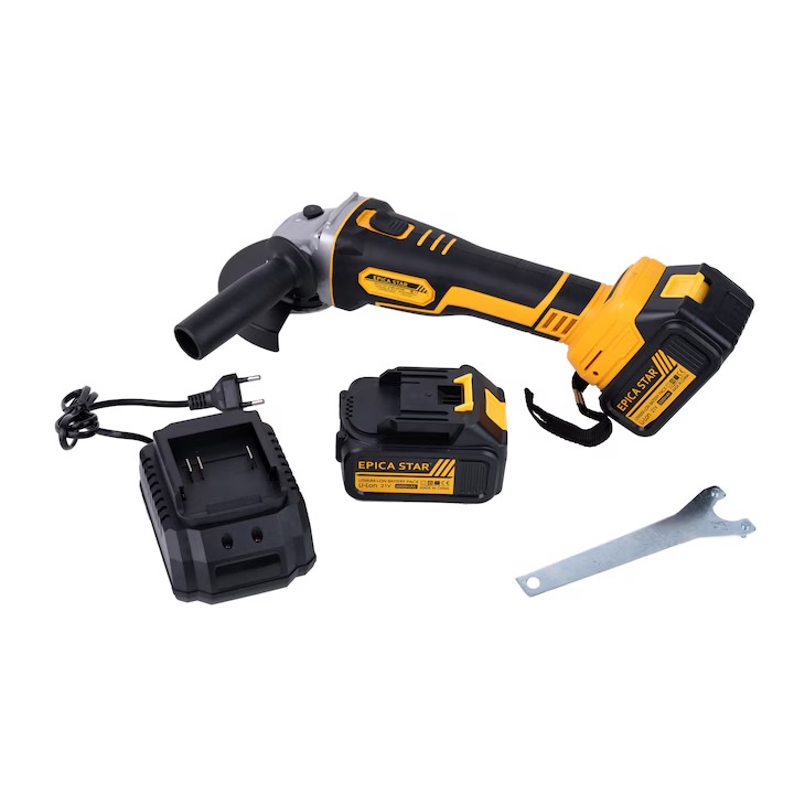 Cu polizorul unghiular fara fir cu acumulator Li-ion Brushless de la EPICA STAR, puteti efectua cu usurinta orice proiect de prelucrare a metalelor sau a altor materiale. Acest instrument este alimentat cu un acumulator Li-ion de 21V, care ofera o putere ridicata si o durata lunga de functionare. Cu o serie de functii avansate, cum ar fi pornirea lenta si protectia la repornire, acest polizor unghiular este ideal pentru aplicatii profesionale sau de bricolaj.