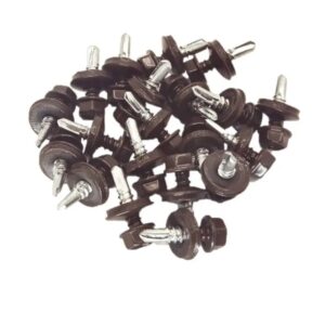 Cutie cu 250 buc – Surub Autoforant Cap Hexagonal 4.8x19mm Maro RAL 8017 pentru tabla cu saiba cauciuc, confectionat din otel carbon electrogalvanizat cu garnitura EPDM din cauciuc si saiba din otel., cu antrenare hexgon de 8mm, ce sunt utilizate in general pentru fixarea acoperisului cu tigla metalica. Aceste suruburi autoforante pot fi folosite si pentru a fixa tabla cutata, tigla metalica, spica metalica, tabla ondulata si accesoriile aferente acestora. Surubul autoforant ofera o suprafata mare de contact, oferind o fixare sigura si stabila a tablelor.